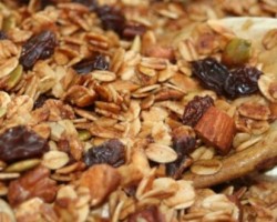 Outro elemento favorável na Granola consiste no conteúdo de fibras alimentares. As fibras beneficiam a saúde de todo o intestino, por conta do efeito sobre o bom funcionamento do órgão - auxiliando na melhora da constipação quando associada à ingestão de líquidos - e também na ação positiva sobre a manutenção das bactérias benéficas que fazem parte da microbiota intestinal. Essas bactérias atuam na produção de alguns nutrientes e mantém saudáveis as paredes de todo o comprimento do intestino.